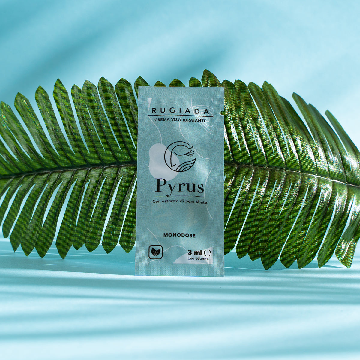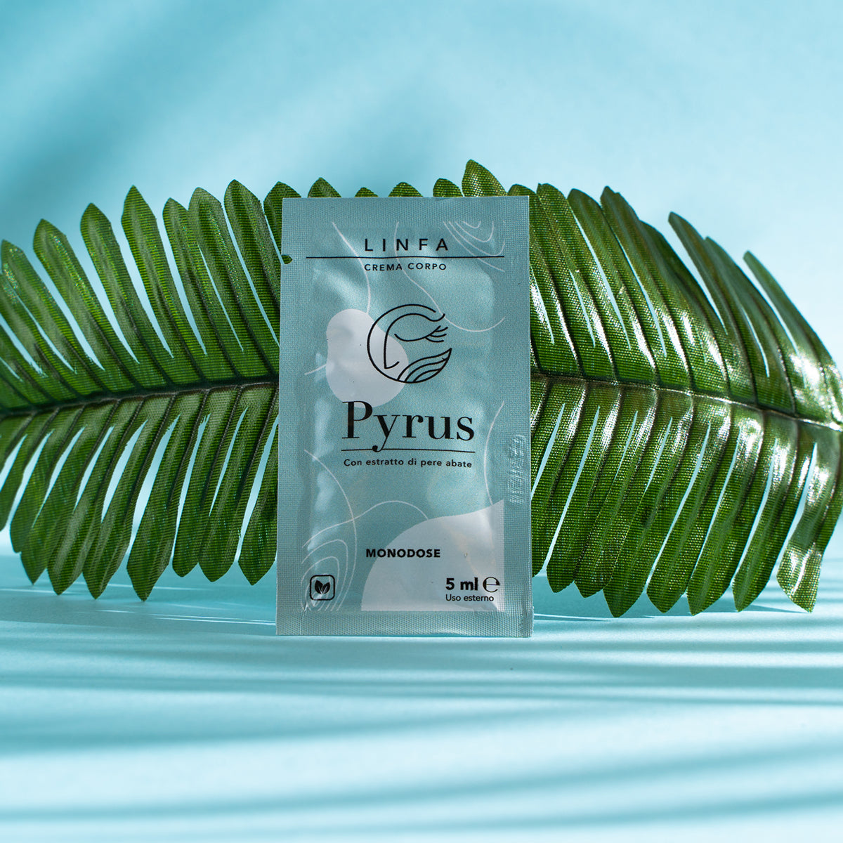 Abbiamo pensato ad un box completo di 7 monodose Crema Viso Rugiada e 7 monodose Crema Corpo Linfa, per permettervi di godere durante le vostre vacanze dell'esperienza unica di Pyrus.